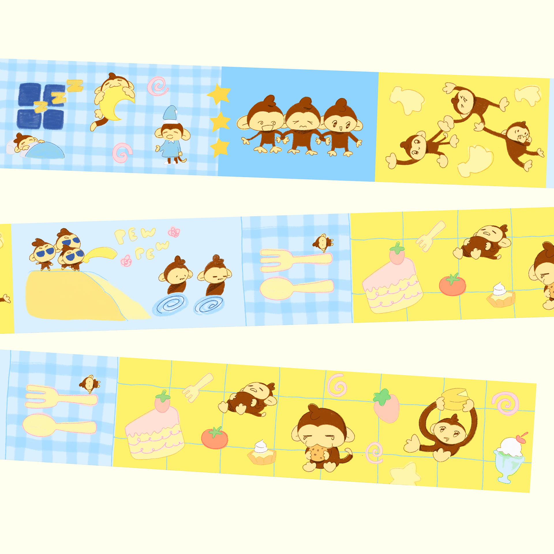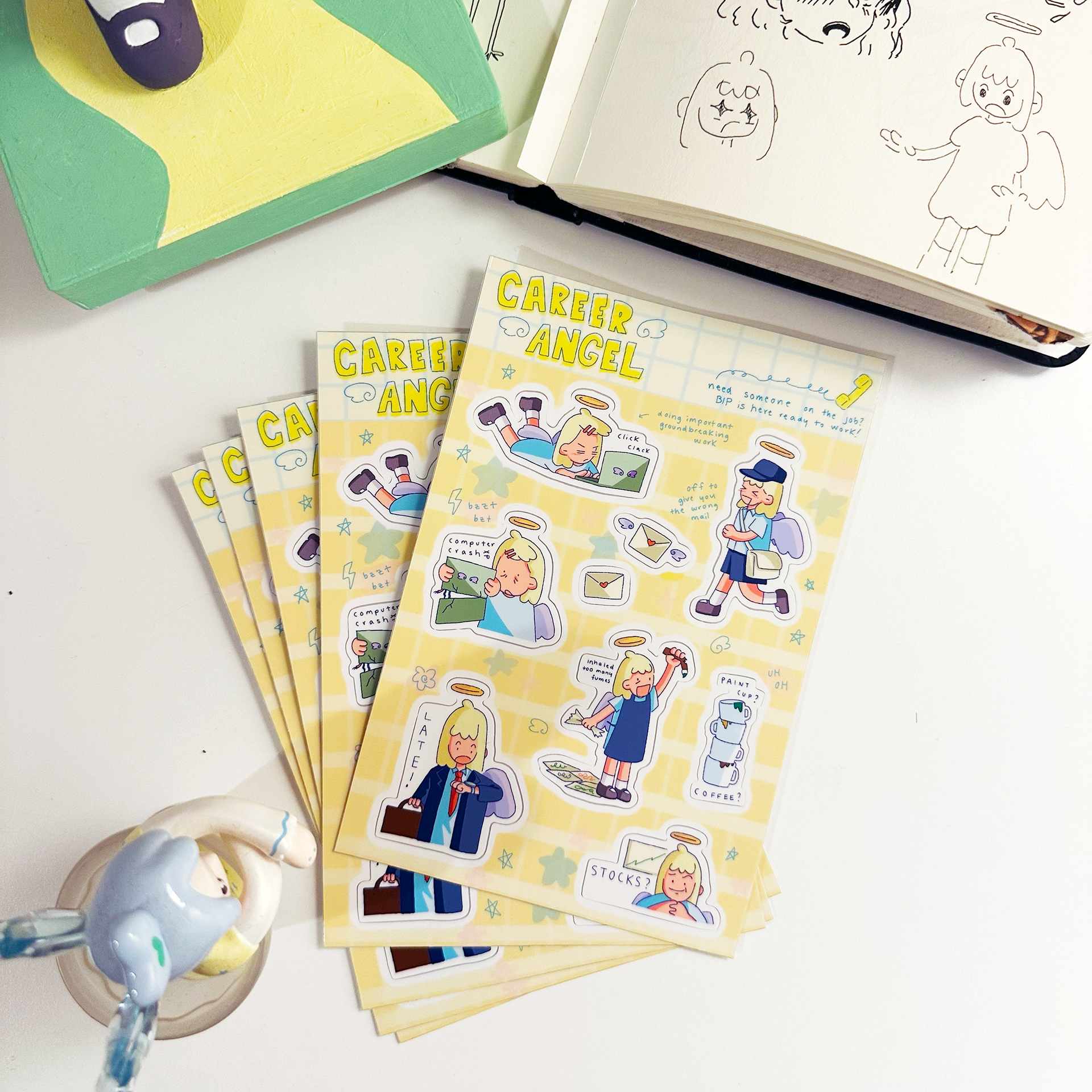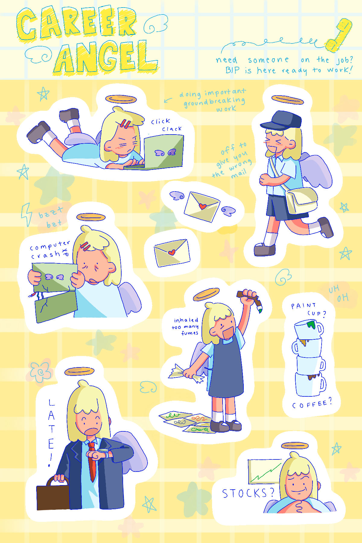 Sticker, washi tape, tshirt designs made to be sold at art markets